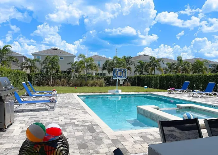 Esta villa está situada en el barrio Celebration, a 2 km del Parque Acuático Reunion Resort. El Watson Golf Course está a unos 30 minutos a pie. La villa Gorgeous 5Br At Encore Resort Next To Disney - 305 está al lado de lugares familiares como el Parque de Aventura Orlando Tree Trek.